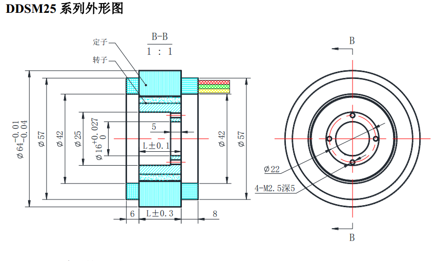 DDSM25 series brushless drive motor outline