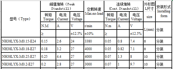 NH38LYX series brushless torque motor performance indicators