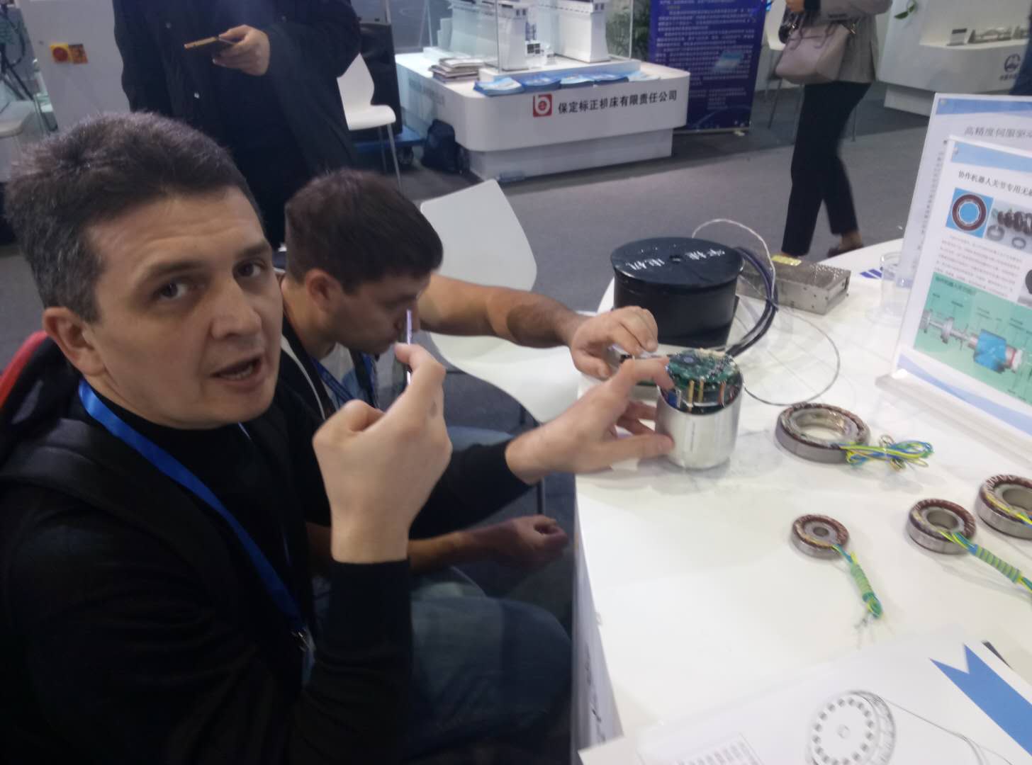 以“創(chuàng)新、智能、綠色”為主題的第19屆中國國際工業(yè)博覽會于2017.11.7-11日在上海國家會展中心舉行。河北省宇捷電機(jī)科技有限公司在4區(qū)河北省工業(yè)展區(qū)內(nèi)進(jìn)行了產(chǎn)品展示,據(jù)統(tǒng)計(jì)第19屆中國國際工業(yè)博覽會歷時5天、參展規(guī)模和專業(yè)觀眾數(shù)量均創(chuàng)歷史新高,據(jù)大數(shù)據(jù)監(jiān)測平臺實(shí)時數(shù)據(jù)顯示,截至11日中午12:30,本屆中國工博會共吸引境內(nèi)外專業(yè)觀眾超16萬人次,較去年同期增長近6.67%。河北省宇捷電機(jī)科技有限公司展臺前咨詢和觀看電機(jī)的人員絡(luò)繹不絕,尤其是其中的機(jī)器人專用無刷直驅(qū)電機(jī)TBSM系列正弦波無刷力矩電機(jī),可稱為此次參會的明星產(chǎn)品。