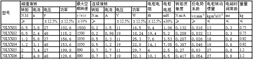 70LYX系列直流力矩電動(dòng)機(jī)參數(shù)性能表